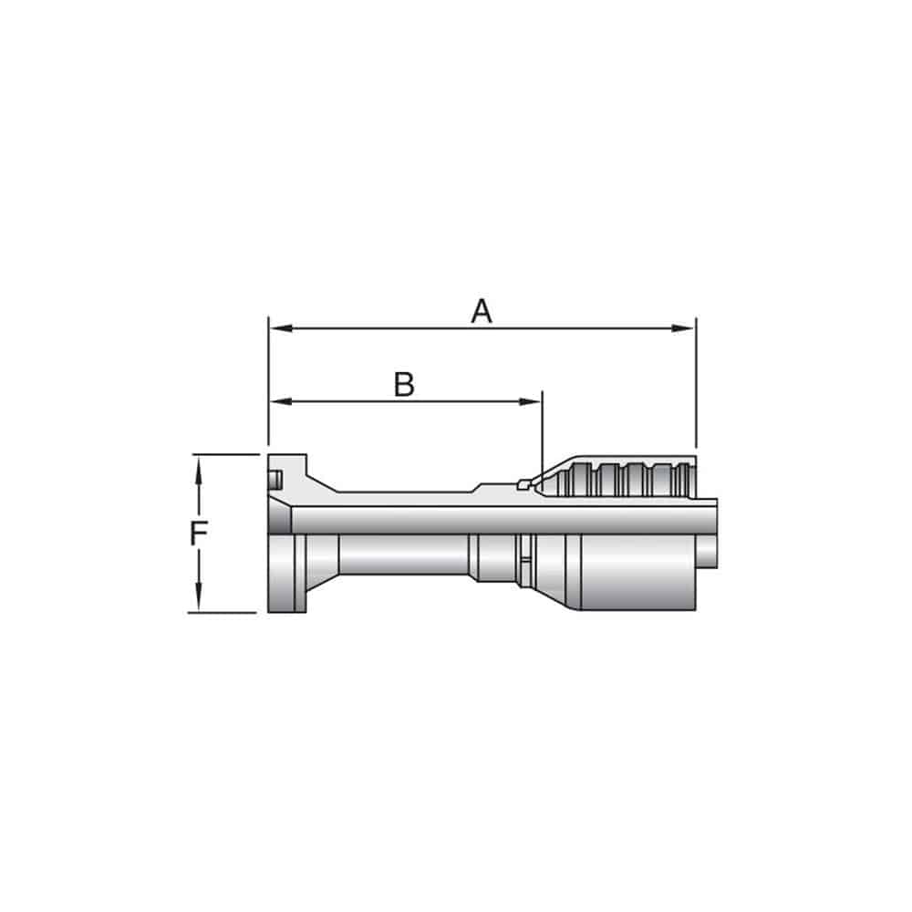 | Part Number | Flange inch | Hose I.D. inch | A inch | A mm | B inch | B mm | F inch |